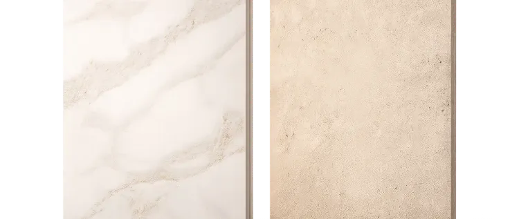 Quartzite is hard and abrasive, so sanding lines and tooling marks can remain visible after standard polishing—especially on light colors.