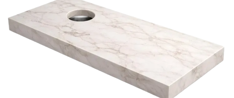 Quartz and engineered stone can smear resin, burn, or micro-chip on the inner wall, especially at high feeds or unstable coolant. Defects show after polishing.
