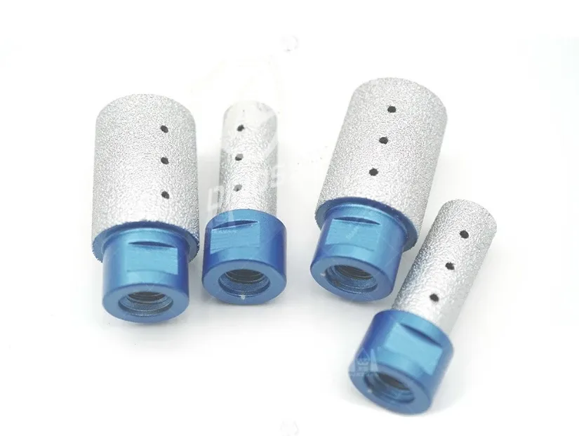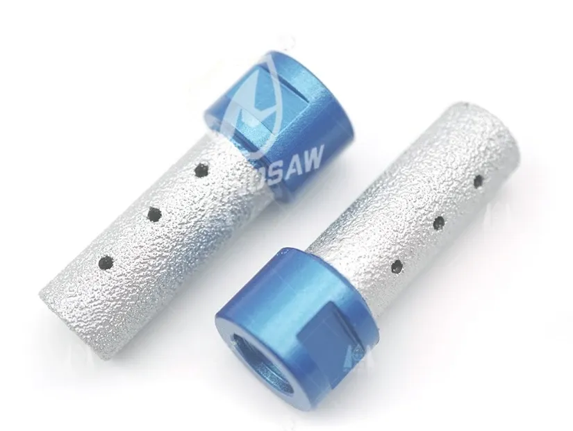 On a CNC router or machining center, the finger bit runs wet with center water feed to cool and flush slurry. Diamond grit with soft/standard bond options helps the tool stay sharp and stable instead of burning or glazing.